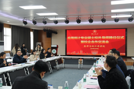 2025年1月7日15时,公司在8楼报告厅举行应用统计专业硕士校外导师聘任仪式暨校企合作交流会。365英国上市公司校董邢光磊、公司领导班子成员、新聘任校外导师及应用统计专业师生代表参加会议。