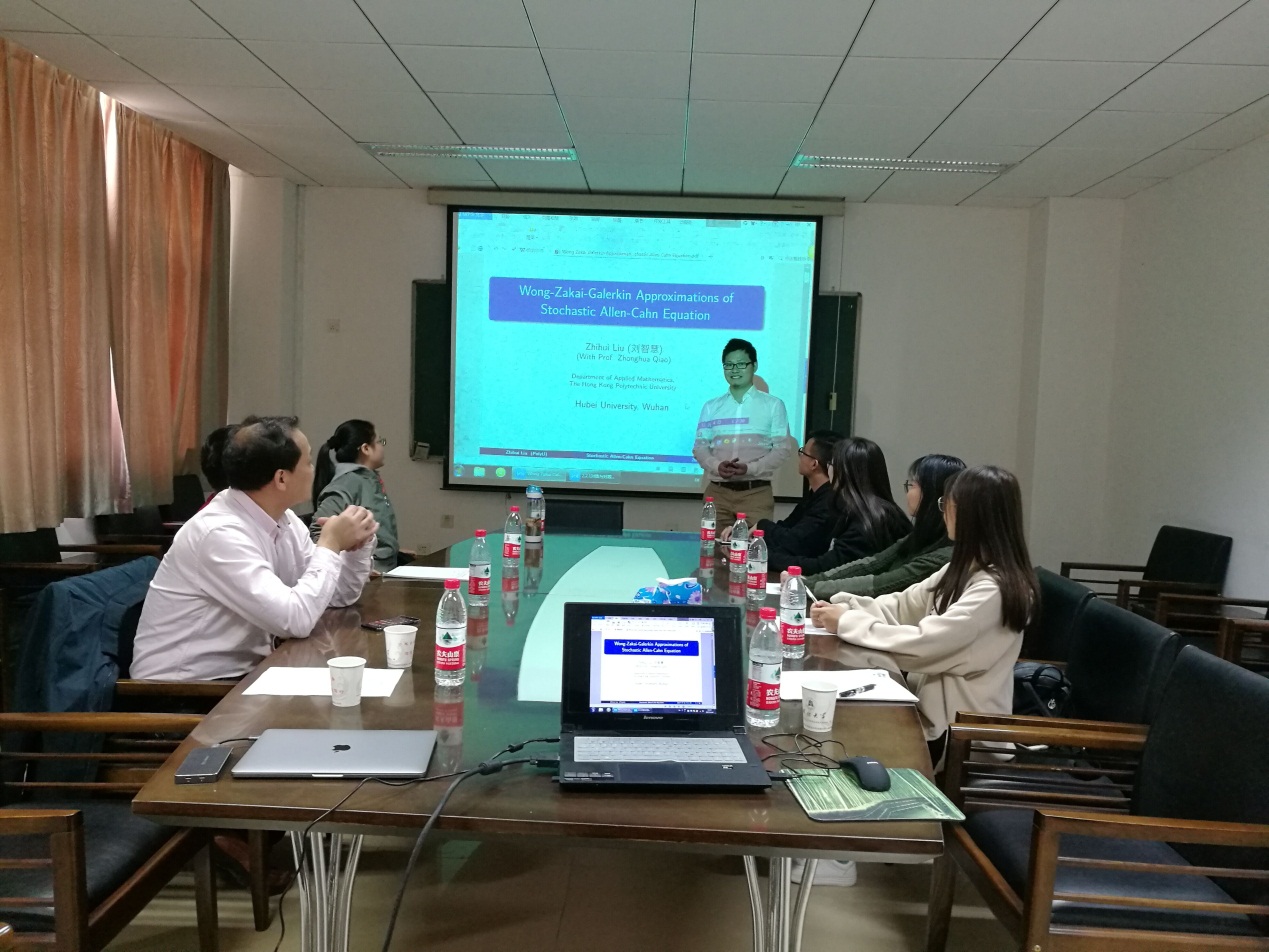 2017年11月4日下午,香港理工大学博士后刘智慧来公司讲学,在公司203会议室为师生作了题为“Wong—Zakai Approximations of Stochastic Allen-Cahn Equation”的学术报告。
