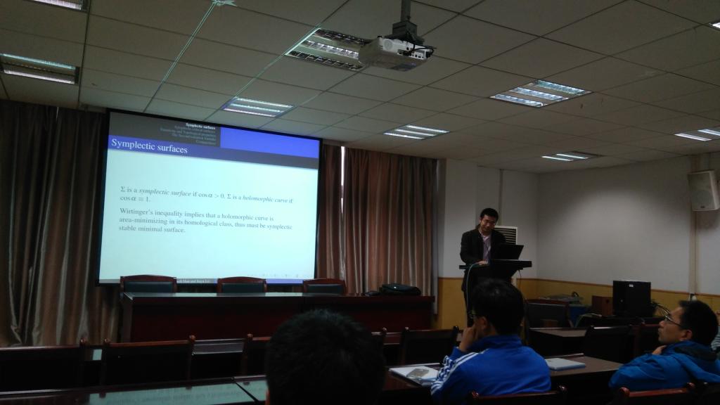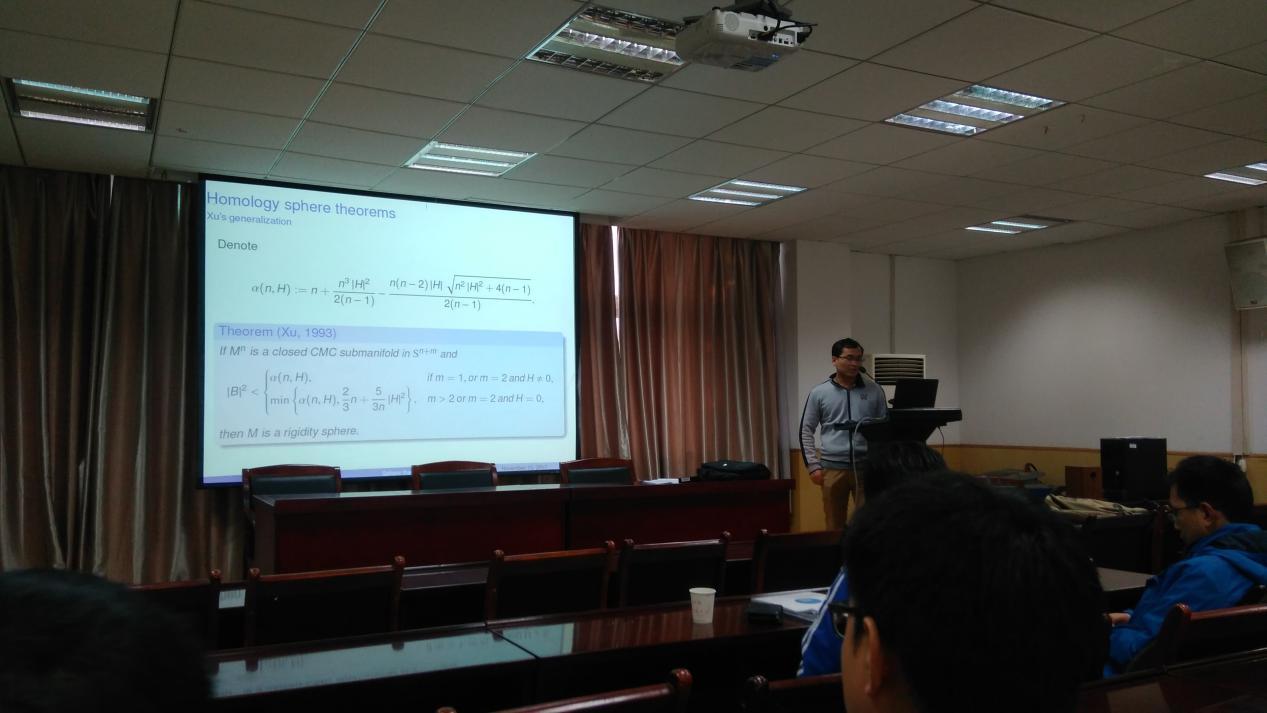 2017年11月15日下午,武汉大学孙俊副教授、孙林林博士来公司讲学。在365英国上市公司201报告厅他们分别为师生作了题目为“On symplectic critical surfaces”和“Sphere theorems”的学术报告。