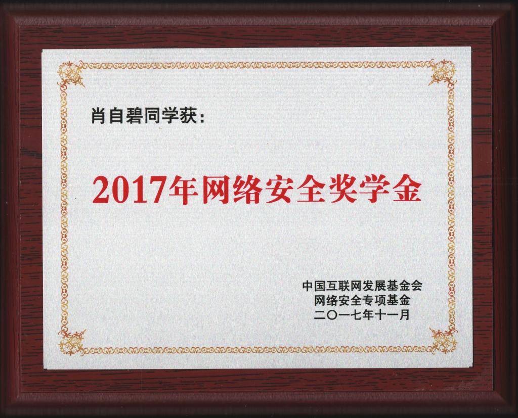 日前,2017年度中国互联网发展基金会网络安全专项基金网络安全奖学金正式下发,公司博士生肖自碧获得5万元奖学金。本年度全国共有72名研究生获评此奖学金。