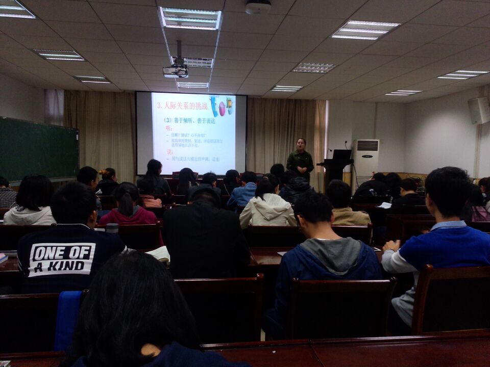 在讲座中,张玥老师以自己的视频、图片等多种方式,通过亲身经历、真实案例、现场解说,生动幽默地为我们阐述了生命的珍贵。张老师以亲身经历为我们讲解母亲生育的艰辛与痛苦,启迪我们要珍惜生命的来之不易,尊重生命、爱护生命。张老师还讲到,在生活中我们要学会快乐,学会主动去表达心中的感情,并且还分享了她自己朋友圈里的故事,告诉我们要学会与人沟通。