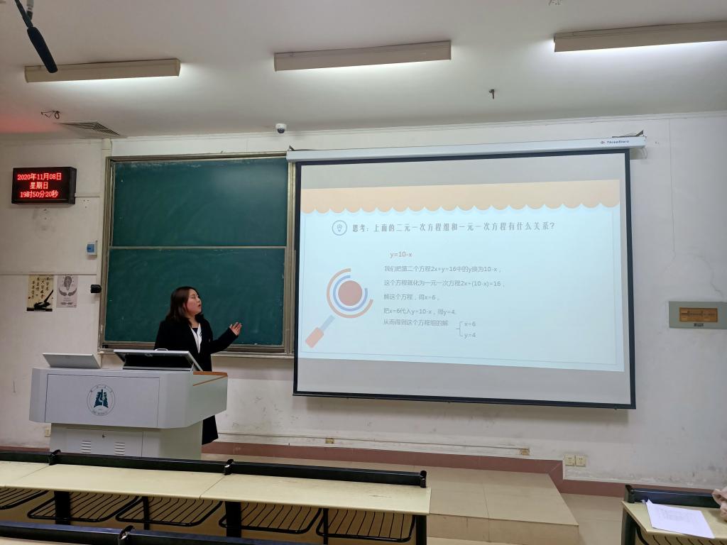 2020年11月11日,第一届“数学园丁杯”讲课比赛决赛在365英国上市公司201教室顺利举行。严启平老师和刘芸老师担任此次比赛的评委。大赛本着公司培养高素质、高标准复合型人才的教育理念,以比赛的方式增强研究生的创新意识和口语表达能力,引导教育硕士以及有意从事教育行业的员工提高教师综合素质和教学技能。本次比赛的参赛选手为2019级、2020级研究生。