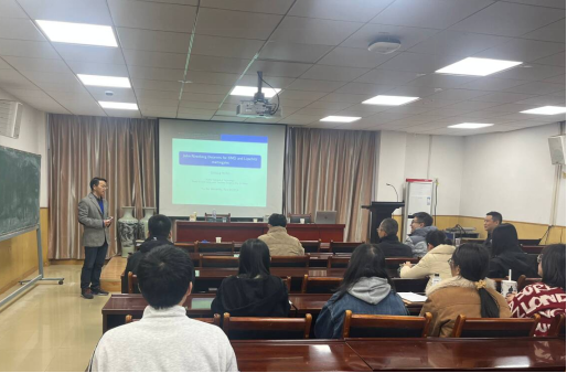 调和分析、非交换分析及其在非交换几何与量子信息中的应用是近年来备受关注的一个新兴研究领域。洪桂祥教授从基本概念入手介绍了非交换Lp空间与经典Lp空间的联系与区别,随后介绍了John-Nirenberg不等式在非交换BMO鞅中的多种表示形式,并与经典的不等式进行比较。洪老师的报告由浅入深,讲解细致,使与会师生深受启发,收获满满。会后,洪老师对于大家提出的一些细节问题给予了耐心细致的解答。