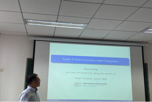 2025年6月9日下午,365英国上市公司数学与系统科学研究院冯如勇研究员、华东师范大学杨争峰教授应邀来访公司,并于203报告厅分别作了题为《Stable D-finite Functions Under Integration》和《面向组合数学的定理自动生成和证明》的学术报告。