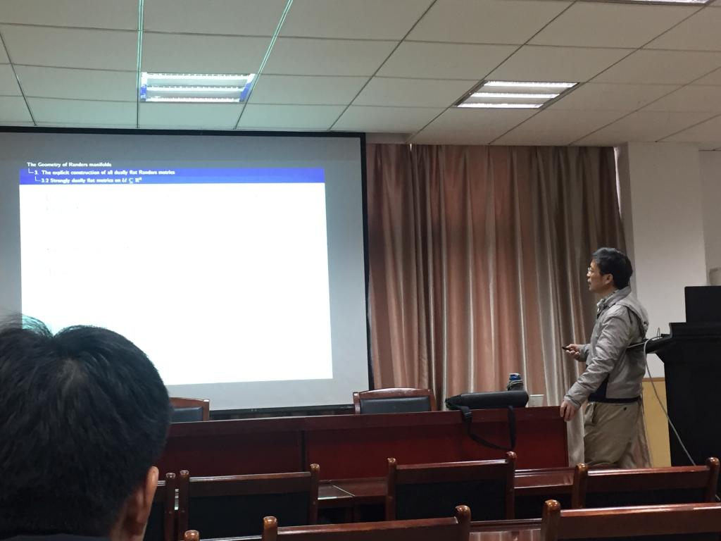 报告中,莫老师详细的介绍了Randers metrics的相关性质和形式,从而引出Randers geometry,并解释了Randers geometry是由航海问题而导出的几何问题,与现实密切相关。