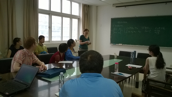 张英伯教授以《高等代数》中行列式的引入,若而当标准形以及主理想整环上的模为例,结合北京师范大学数学科学公司代数学课程十余年来的教学选材经验与体会,为公司师生展示了如何上好代数学课程的精彩报告。张教授的教学演示过程条理清晰,通俗易懂,获得了在场师生的一致好评。报告会后,几位老师和张英伯教授就教学问题进行了深入探讨。