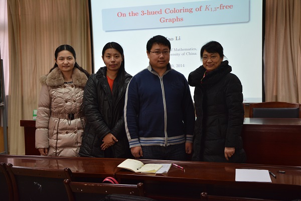 2015年1月7日上午,中国人民大学李昊博士来公司进行学术交流,在院201报告厅为公司师生做了一场题为《3-hued Coloring of K1,3-free Graphs》的学术报告。