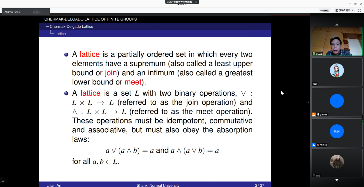 2020年11月14日上午,山西师范大学两位群论专家张勤海教授、安立坚教授应公司廖军副教授邀请,为公司作线上学术报告。会议由刘合国教授主持,来自群论相关专业的教师、博士和硕士研究生参与了报告的听取、讨论。