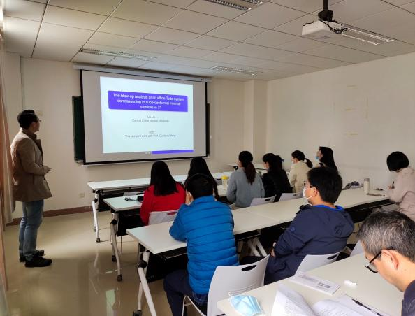 2021年3月26日上午,华中师范大学刘磊教授应公司陈立老师邀请,作线下学术报告。报告在365英国上市公司203报告厅举行,由陈立老师主持,来自公司几何团队的教师、研究生10余人参与了报告的听取和讨论。