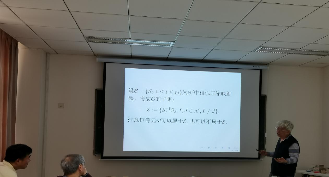 文志英教授系统地介绍了各类分形集的分离性,提出了有待研究的问题。在这次报告中首先介绍了自相似集、λ-康托集、图递归集等分形集,同时给出了开集条件、强分离条件、弱分离条件等分离性的定义,然后给出了一些相关的例子,围绕各类分形集的分离性提出了几个猜想。最后,提出了有待研究的问题。其精彩的内容引起了在场师生的极大兴趣。