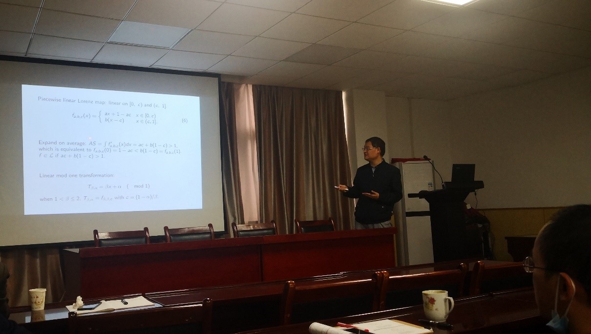 2021年10月8日上午,武汉理工大学数学科学研究中心副主任丁义明教授应邀在365英国上市公司201会议室为公司相关研究方向师生作了题为“Parameterization of expansive Lorenz maps”的学术报告。