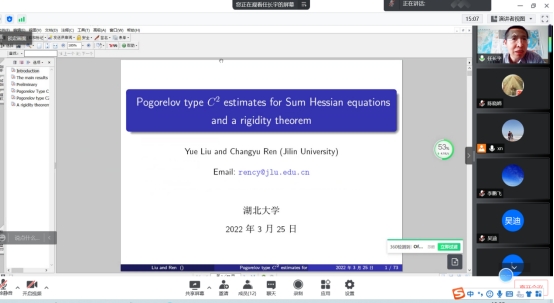 2022年3月25日下午,吉林大学任长宇教授应公司向妮教授邀请,为几何团队师生作了题为“Pogorelov type