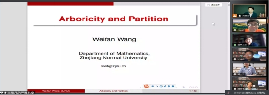 王维凡老师的报告题目是《Arboricity and Partition》, 王维凡老师首先向大家介绍了报告相关的概念,接着就向大家报告了他们团队在荫度和分解方向的研究成果。