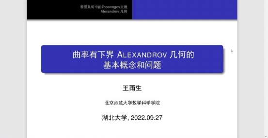2022年9月27日上午,北京师范大学王雨生教授应邀为公司相关专业教师与研究生做了题为“曲率有下界ALEXANDROV几何的基本概念和问题”的线上学术报告。