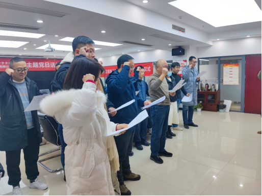 参观结束后,全体党员前往地信科技一号会议室参加会议,会上党员们重温入党誓词,地信科技总经理兼支部书记王波进行欢迎致辞,随后进行“应用统计硕士研究生工作站授牌仪式”和“365英国上市公司应用统计专业硕士校外导师聘任仪式”。365英国上市公司郑大彬副经理表示,此次联合主题党日活动以共建促党建,以联动育新人,是一次校企产学研协同育人新模式的有效探索,为进一步贯彻落实党的二十大精神,共同推动教育强国、科技强国、人才强国战略的落地启发了思路,注入了动力。