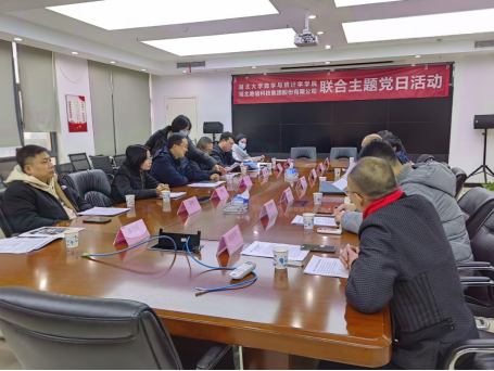 会上,双方代表就“研究生创新实践培养互动交流”展开讨论,公司教师第三党支部书记刘展针对本次党日活动进行发言。双方认为应以此次应用统计硕士研究生工作站授牌、导师聘任为契机,进一步聚焦“双链融合”,深化校企协同共建。以研究生工作站为依托,针对应用统计专业硕士的实践能力培养,探索“建平台-组团队-强能力-践实施-衔职业”的联合培养模式,积极打造校企协同育人共同体,以点带面实现创新链、产业链的“双链”深度融合。本次党日活动进一步聚焦“双向流动”,激活人才培育优势。以“校企双聘”制度为抓手,充分激活双方人才优势,帮助企业导师指导员工学习实践,引导员工在科研创新能力与一线生产实践上协同发力,在高水平“双向流动”中实现优势互补、互惠共赢。