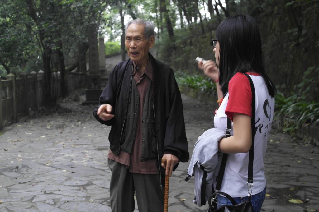刚从岳麓山顶下来,又马不停蹄地奔向下一站——麓山忠烈祠,这是为四次长沙会战中第四陆军阵亡将士所建。缅怀着革命先烈,我们来到了烈士公墓,在这里我们与一位93岁的革命老红军不期而遇,爷爷耳背听不清我们说话,但是却热情地给我们讲述那段战争的岁月,一首首军歌触动心弦:“我们是冀鲁豫的新青年,我们是抗日战争的骨干,我们的血和肉心如铁,黎明前的黑暗毫不怕。。。”从老红军爷爷的话语中,我们可以体会到当时战争的残酷与可怕,同时也深深为我们的革命烈士所骄傲。在离开之前,我们对革命公墓三鞠躬,以表缅怀和敬仰。