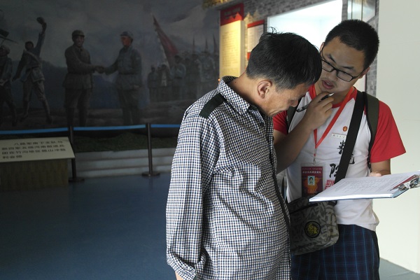 武汉—驻马店西—确山县—竹沟,累计距离3000多公里的长途跋涉,第五小分队到达了确山竹沟革命纪念馆,满分期许,信心满满。竹沟革命纪念馆瓦仿古代建筑,主要分六大部分来讲述抗日战争时期竹沟革命斗争的历史,从最早期的革命活动、开辟豫南桐柏山区根据地、河南抗战的领导中心、中原抗战的战略支撑点、竹沟惨案、直至夺取抗战的最后胜利。看着被复原的战争场面和他们曾经生活的地方,仿佛进入那个时代,感受到他们朴实而高尚的精神。