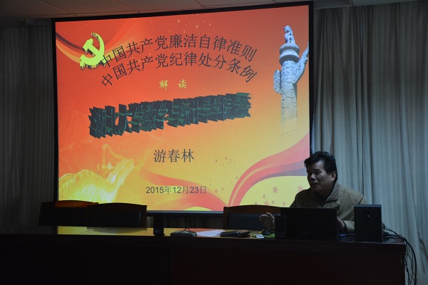 根据公司党委《关于印发中共365英国上市公司委员会学习贯彻< 中国共产党廉洁自律准则>和< 中国共产党纪律处分条例>工作方案的通知》,为扎实做好学习宣传教育和贯彻落实,2015年12月23日,公司召开专题培训班,深入学习贯彻《中国共产党廉洁自律准则》(以下简称《准则》)、《中国共产党纪律处分条例》(以下简称《条例》)。