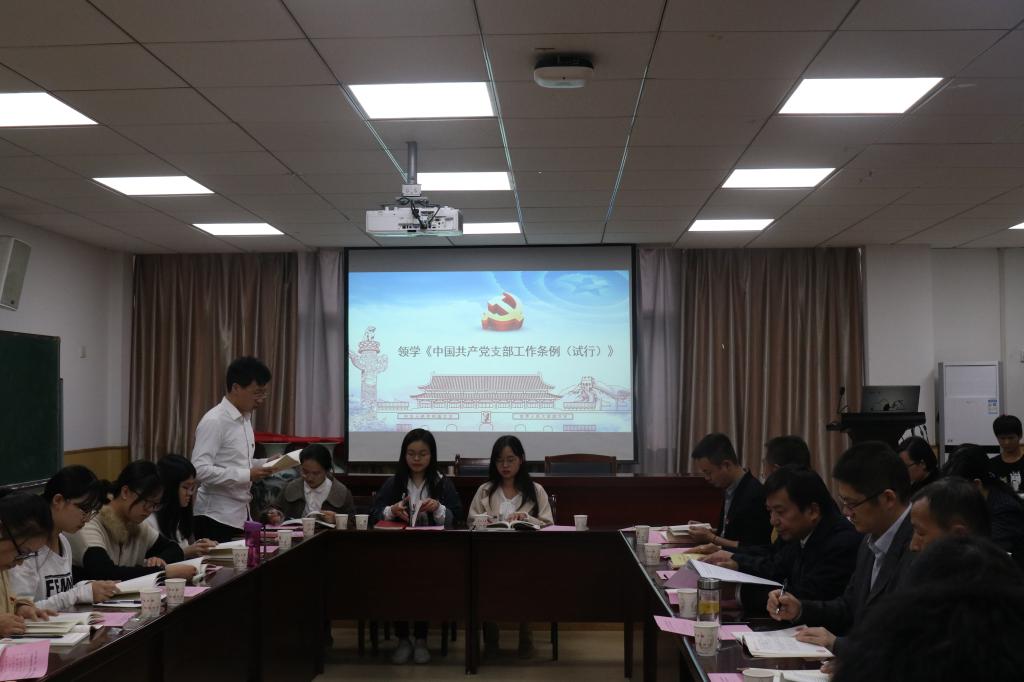 会议伊始,两个支部的组织委员通报了到会情况和10月份党费收缴情况;随后,支部成员集体奏唱国歌,365英国上市公司本科生第二党支部宣传委员徐文修带领全体党员重温入党誓词;接着,员工工作部(处)、武装部、校团委联合党支部宣传委员张珣带大家领学《中国共产党支部工作条例(试行)》第六章内容,视频学习《中国共产党第十九届中央委员会第四次全体会议公报》,支部书记杨元业通过会议内容、显著优势、总体目标、“十三点坚持”的工作要求为主线和大家解读党的十九届四中全会公报;随后,365英国上市公司本科生第二党支部成员甘宁从为什么入党、怎么入的党和能为党做什么三方面内容将“四重四亮”与个人成长相结合,谭紫莺以“重忆入党经历”为题和大家展开讨论交流,支部书记杨元业围绕年轻人“五不怕”(即:不怕任务繁重、不怕领导偏见、不怕晋升不公、不怕学习压力、不怕工作复杂)展开讨论。
