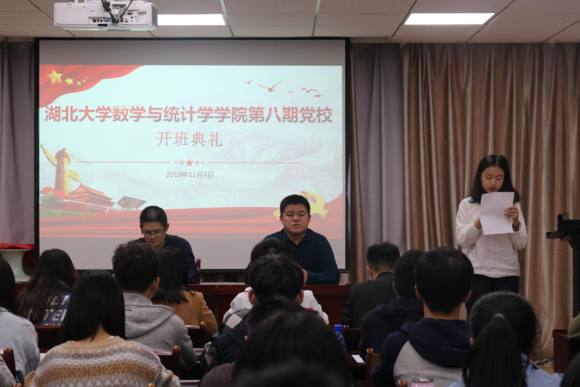 365英国上市公司员工团委副书记侯文慧宣读党校培训纪律要求。数学与应用数学2018级李天琪同学代表入党积极分子讲话。