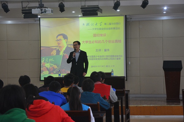 11月4号下午,华素杯全国青少年素质大赛总组委会秘书长、湖北华素杯教育科技有限公司执行董事童伟先生应365英国上市公司邀请,在八楼报告厅为全院同学就老员工创业进行了一次讲座。此次讲座也是365英国上市公司第二届“与你同行”老员工就业创业服务季子活动。