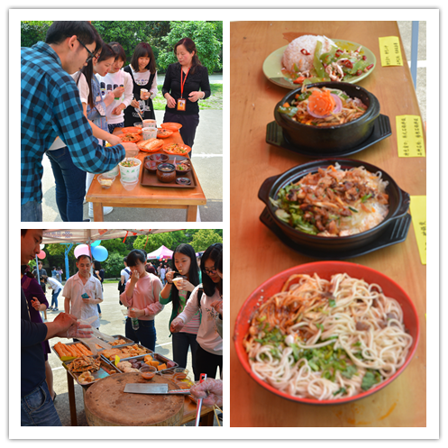 一阵扑鼻的香气,吸引了大量的“好吃佬”,各种小吃纷纷登场,奶酪三号、粉色佳人、海洋之心、面疙瘩、烧鹅饭……让人眼花缭乱。小小的摊位前挤满了前来品尝的吃客。大家兴趣盎然,高兴的品尝着手中的美食,也不住的张望,搜寻着下家。食堂阿姨们也愉快的向大家推荐着自己的精品菜肴,“这个活动为我们和员工之间搭建了一个沟通渠道,在员工品尝到我们的美食的同时,我们也了解到了员工的意愿,有助于我们为同学提供更加满意的膳食。”一位食堂的阿姨对我们的记者说。