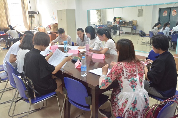 比赛采取无领导小组讨论的形式,每个无领导小组的选手再次随机分为3个小组,以小组为单位讨论一份《等差数列前n项和公式的证明和应用》教案的不足之处,并选取代表发言,选手们细致阅读教案,并积极讨论,纷纷就其中的问题提出自己的看法。13级数学专业的丁腾同学在着眼于找出其中的缺点的同时,也注重吸纳其中的优点,并就自己觉得做得好的方面提出了自己的看法,博得了评委老师的好评。经过此次复赛,选手们对如何备好课有了更深的领悟,14级数学专业的邱静雯说:“以前看到网上的这种教案,感觉挺好,今天这么细致审阅,却发现存在很多问题,这让我意识得到看待事物不能浮于表面,同时也督促我在今后的学习乃至工作中要更加的精益求精。”选手们亲切的语调,巧妙的思维方法,多角度的分析问题,吸引了在场工作人员和评委老师的热切关注,评委老师点评说:“这次活动,各位选手们积极精彩的发言,一些好的教学想法让我受益匪浅。”