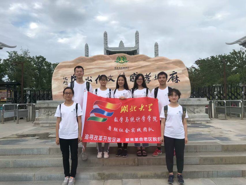 图为调研队在五位领袖雕像前合影