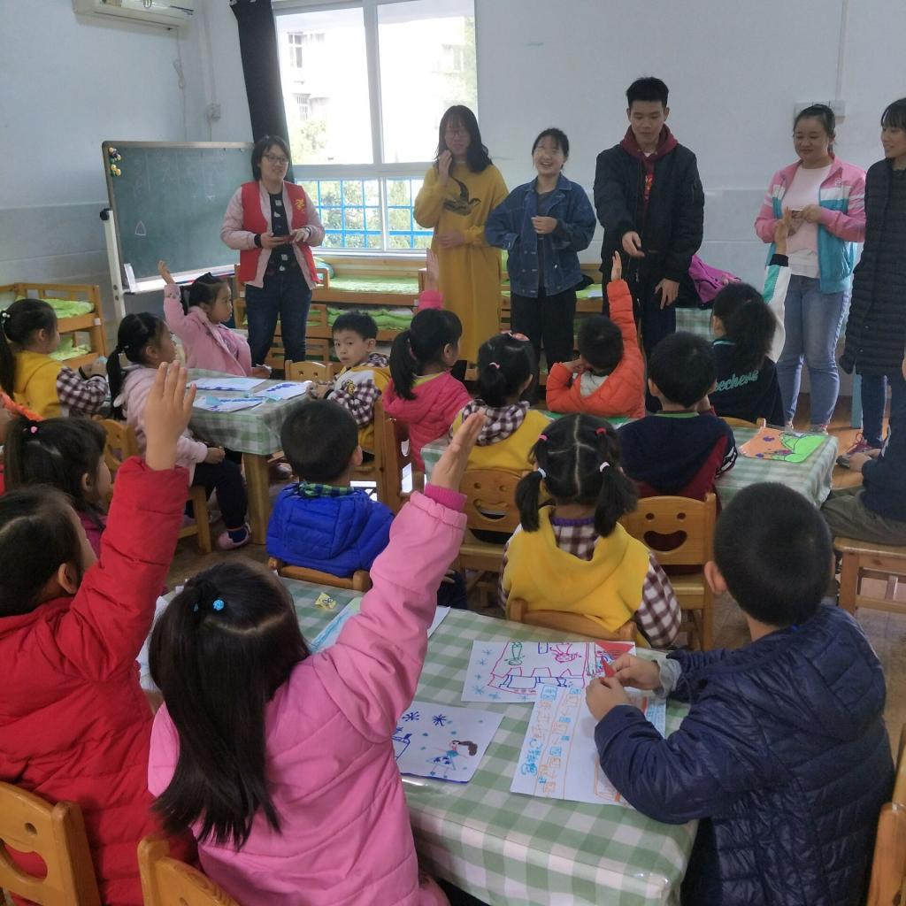 本次活动以互相讨论,知识问答为主。志愿队队员以一首儿歌和服务对象拉近距离,之后开展轻松有趣的活动来活跃气氛,如:教授绘画,折纸,书法等。趣味活动结束,志愿队队员向服务对象以口述的形式普及军运会及国家相关知识,并以随堂提问的形式检验学习成果。问及“军运会”的相关知识,服务对象的回答准确,完整。但是在问及中国相关知识如:“中国四大发明”,服务对象的回答略有欠缺,随后,志愿队队员向大家普及中国四大发明相关知识,扩大服务对象的知识面。在本次普及知识及随堂提问的过程中,小朋友们高高举起了双手抢答问题,使得接下来的活动能够顺利有效的进行,并远远超出了预期效果,从活动中可以看出服务对象对于国际和国家知识有一定的了解,这也为此后活动的进一步展开奠定了基础。