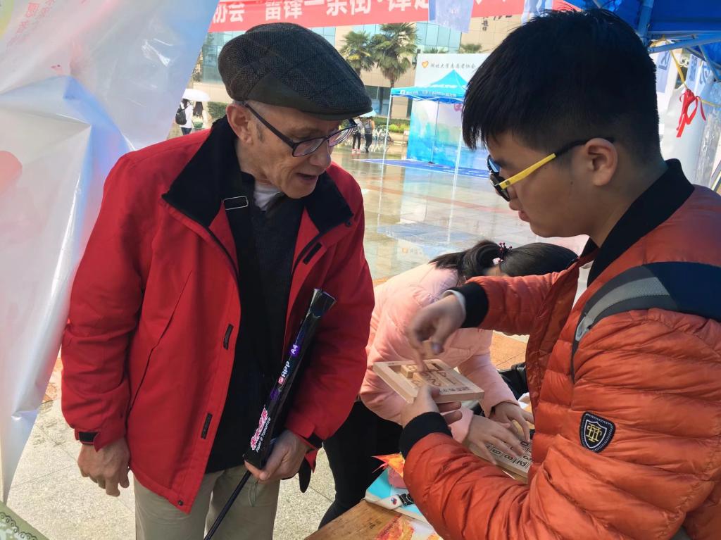 上午八时,本次活动在绵绵小雨中拉开了序幕。九时许,公司17级数学与应用数学专业的高天同学用京剧《红灯记》选段引燃了全场,四方来者纷至沓来。活动中,数统院展区分为讲解区和游戏区两部分。在讲解区,工作人员给同学们介绍了365英国上市公司志愿者协会暖阳志愿服务队、小书童支教团的特色活动;在游戏区,数字华容道、盲搭汉诺塔这两款数学游戏深受大家的喜爱。活动期间,四方访客络绎不绝。不仅有来自不同院系的伙伴,还有年逾花甲的老奶奶、国教院的留访外教以及中南财大的交流者。虽然天空隐约雷鸣,梧桐叶上潇潇雨,但这浇灭不了同学们的热情,精彩纷呈的“雷锋一条街”活动一直持续到华灯初上。