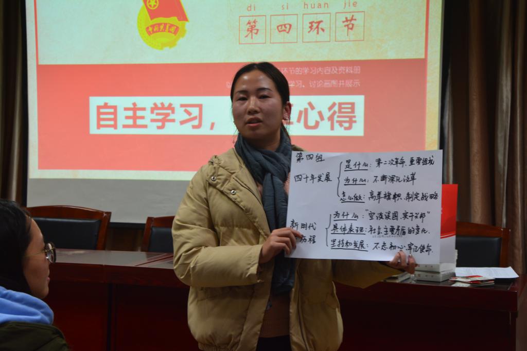 本次活动还邀请了公司青马培训班的和诗雨同学以及团委副书记冉泽宇同学。和诗雨同学根据自己的学习由衷说到:“今天的活动很有意义,通过闯关的形式提高了团员学习理论知识的积极性,也为团干开展团日活动提供了新思路,新模式。我认为作为一名团干,首先要具有较高的政治素养,扎实理论基础知识;其次要具备较强的学习能力,员工干部先员工后干部,在学习上要做到表率作用;最后要具有一定的组织能力,充分调动大家对学习、生活的积极性,与大家共同进退。作为团干要学会自我教育、自我管理、自我服务、自我监督,可以通过开展团日活动学习理论知识,以身作则将改革开放的精神以实际行动传递给每位同学。”管理党建工作的冉泽宇同学向党员同学建议到:“党员应该思想坚定,对待党的安排绝对服从,积极学习时事并且能积极参与党日活动。”最后,本次活动的负责人王志总结到:“今年是改革开放40周年,40年前伟大的邓小平同志提出了改革开放方针,为中国发展道路指明了方向。为庆祝改革开放40周年,我们组织开展了本次学习交流会,通过本次交流会,旨在向大家展示改革开放的光辉历程和今日的中国在改革开放政策下的取得的伟大成就,从而坚定新一代青年的信仰,让公司青年们在改革开放的春风中,坚持着报效祖国、服务人民、奉献社会的价值取向,始终怀有强烈的爱国热情,成为实现中华民族伟大复兴的有理想有抱负的新一代青年。”