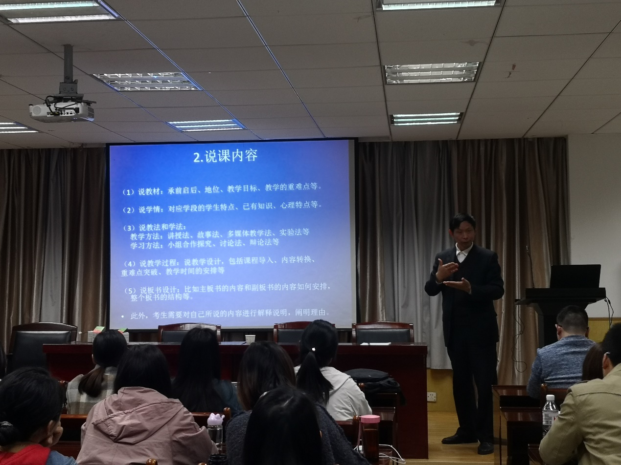 唐毅董事长向同学们介绍了教师招聘考试中面试环节的注意事项及相关要求,生动地结合具体实例,帮助同学们把握面试中最主要的若干因素。