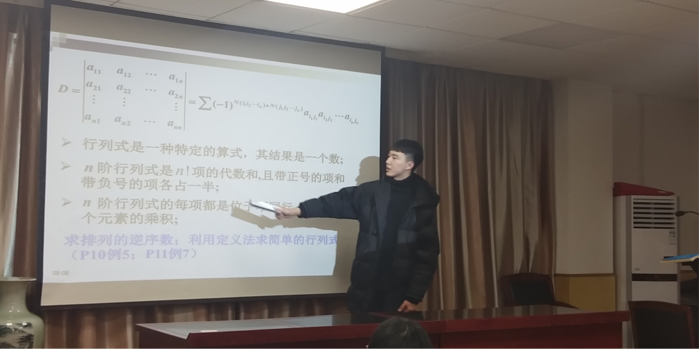 本次课程由公司研究生赵珉浩同学主讲,主要为同学们串讲了线性代数第一章和第三章的重要内容,包含重要知识点的讲解和典型例题的分析。在授课过程中,紧扣重难点,逐步讲解,并结合相关例题具体分析,使得同学们能够更好的掌握,同时同学们积极的提问与交流,使得课堂气氛更加活跃。在讲课结束后,同学们也对本次课程进行了反馈,不仅自身受益颇丰,同时对朋辈导师的教学工作给予肯定,并表示会继续参与后续的活动。