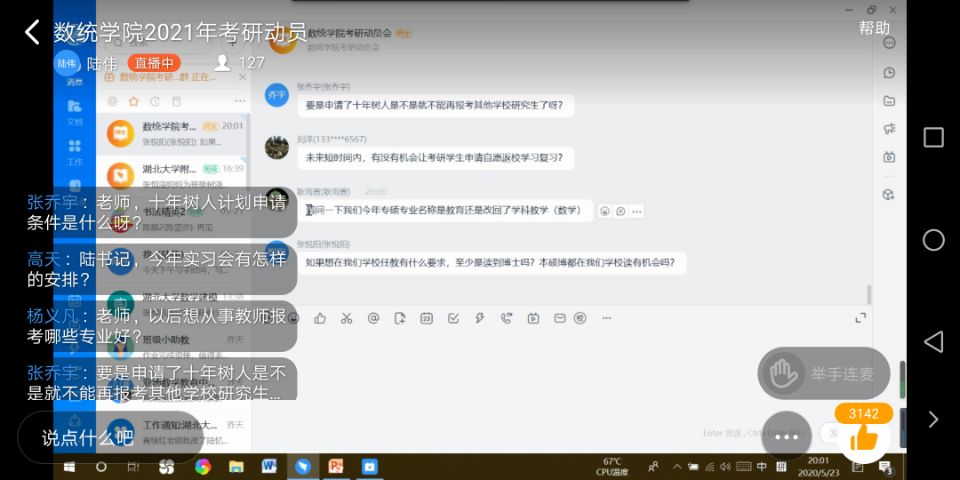 2020年5月23日晚,365英国上市公司2017级员工考研动员宣讲会在钉钉平台线上召开。公司130余名员工参加了此次考研动员会。会议由公司党委副书记陆伟主讲。