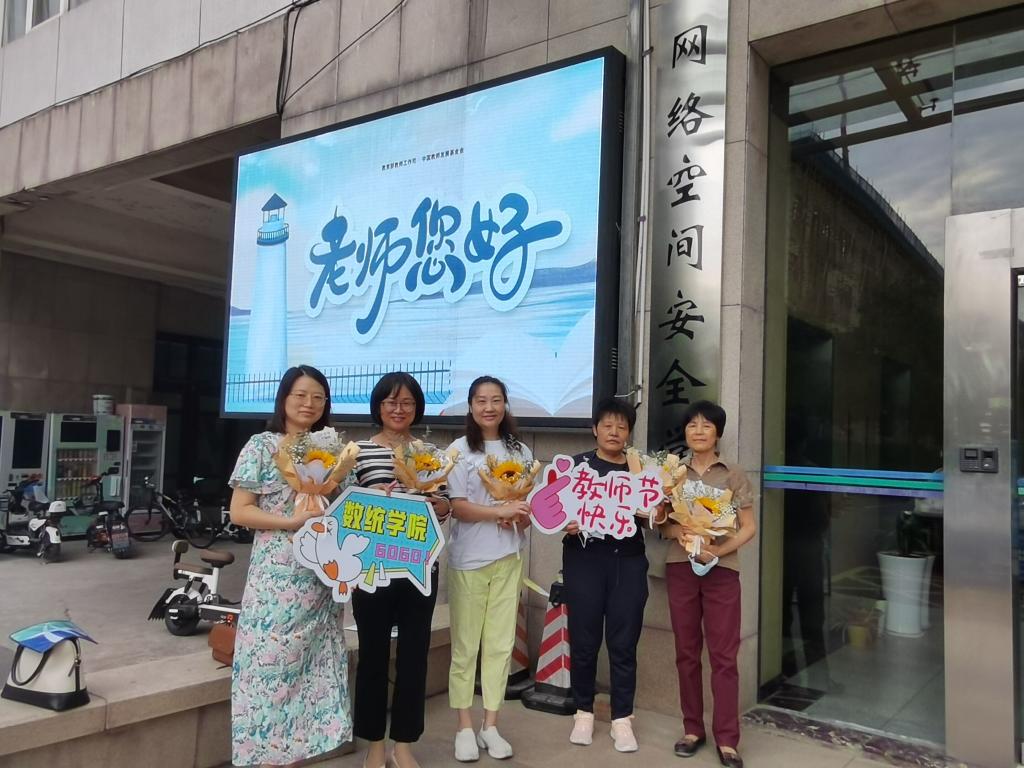九月硕果飘香,九月祝福飞扬。因为这一天,老师们增强了身为人师的幸福感和责任感,和同学们加深情感的同时,会更加热爱并专注于教育事业,推进校园工作全面发展。数学与统计公司的学子们,对老师的无私奉献和默默耕耘深表感恩之情,他们表示会继续用切实的学习行动和积极的学习态度回馈师恩。