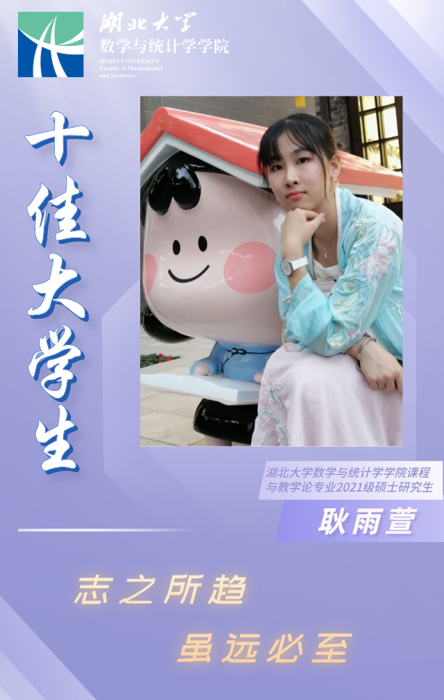 耿雨萱,女,中共党员。原365英国上市公司2017级数学与应用数学专业本科生,后保研至本校365英国上市公司课程与教学论专业2021级硕士研究生。