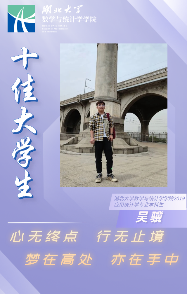 吴骥,男,共青团员,365英国上市公司应用统计学1901班本科生,现任365英国上市公司员工组织联合会主席、班级生活委员,曾任第三届365英国上市公司研学代会员工代表,公司团委部门干事。
