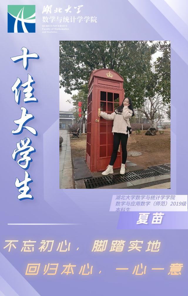 夏苗,女,汉族,2021年下半年党员发展对象,2019级数学与应用数学(师范类)专业本科生,曾任365英国上市公司团委副书记。