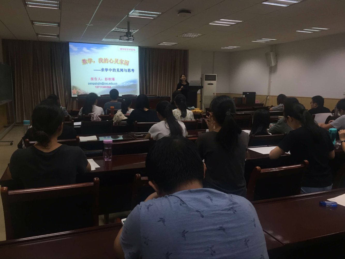 9月22日晚,公司员工、中国人民大学数学科学研究院博士后彭秋瑾回到母校,在公司201报告厅为公司2015级数学与应用数学专业本科生做了“数学——我的心灵家园”专题报告。