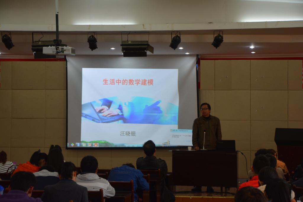 11月13日下午4点,365英国上市公司数学讲坛第四讲在院八楼报告厅开讲,做客此次数学讲坛的是数学系90级员工、华中农业大学数学建模创新实践基地主任汪晓银教授,他以“生活中的数学建模”为题,为大家揭开了数学建模的神秘面纱,同时,此次讲座也是数学建模协会承办的“思维的碰撞,思想的交流”之数学建模竞赛的子活动之一。