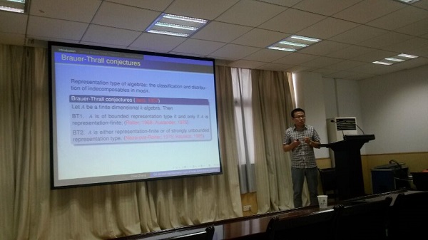 2015年9月28日,贵州大学章超博士应邀来公司访问,并为公司代数学方向的师生作了题为“On derived representation type of finite dimensional algebras”的学术报告。