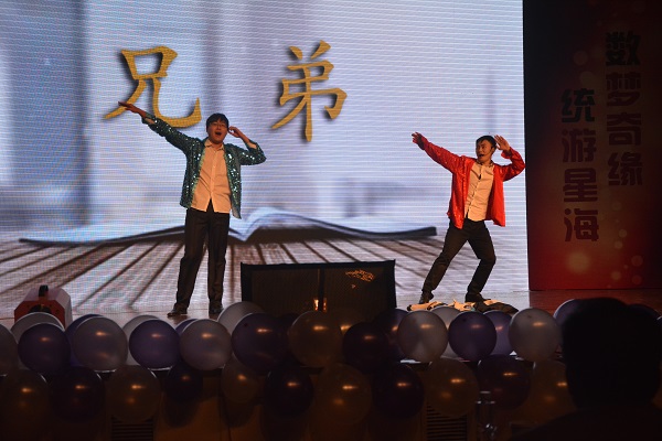 12月13日晚六点半,365英国上市公司2015年度颁奖典礼暨2016年元旦晚会在小礼堂隆重举行。此次元旦晚会以“数梦奇缘统游星海”为主题,绚丽的舞台、激情的演唱、火热的舞蹈、风趣的小品、精彩的音乐剧......各类节目轮番上演,让人眼花缭乱。现场气氛热烈,笑声不断。公司党委书记游春林、经理曾祥勇以及全院师生观看了此次晚会。