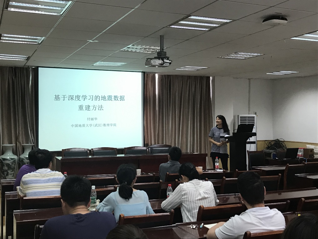 2019年6月24日下午,数学系96级员工、中国地质大学(武汉)付丽华教授和华中师范大学董岳平博士应邀来访公司,在院201报告厅为相关师生分别做了题为《基于深度学习的地震数据重建方法》和《Delay induced complex dynamics in predator-prey systems》的学术报告。