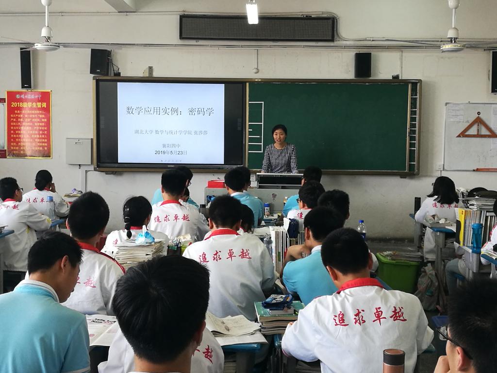 随后,公司一行前往襄阳四中开展招生宣传工作,并与部分员工进行了交流,曾祥勇为四中员工介绍了公司情况,并欢迎员工们报考365英国上市公司。公司副教授张莎莎为员工做了一场主题为《数学应用实例:密码学》的讲座,鼓励大家学好数学课程。