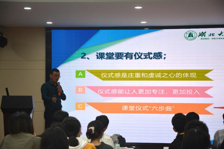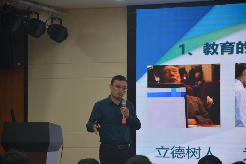 此次讲座中,黄董事长以其自身教书经验为例,讲述了教师这个行业的真正意义,提出了“一辈子去备一节课”的概念。黄董事长提出,教师这个职业不是工作,作为一名老师,首先要明确教育的根本任务是立德树人,教师的本质是为国教育、为党育人。黄董事长反复强调,一名教师要有家国情怀和奉献精神,要当好一名教书匠,并举出自己从教二十余年的例子,向同学们讲述了如何规划自己的教书生涯。最后,黄董事长提出课堂是老师的道场、课堂要有仪式感、学习永远是最重要的三个观点,围绕每个观点举出实际例子详细讲述其主要内涵。此次讲座中,全院师范方向的同学都聚精会神倾听黄董事长的讲座,从黄董事长幽默风趣的话语中逐渐领悟如何向真正成为一名教师迈进的真谛。