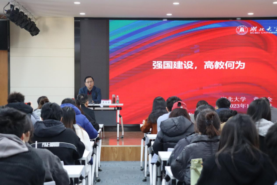 章天金教授从教育强国与教育现代化、准确判断高等教育形势、新时代高等教育新任务三个维度,深刻阐释了从“强国建设,教育何为”到“强国建设,高教何为”的时代之问。他结合学习领会贯彻党的二十大精神实质,深入阐释了中国式现代化的主要特征、核心要义和中国式教育现代化,特别是高等教育在实现中国式现代化中的龙头作用。随后,通过数据、图表等方式带领大家直观地认识“高等教育规模扩张速度进一步加快”“世界高等教育格局开始发生深刻变化”“世界高等教育向普及化深入发展”“重塑世界高等教育发展新路径正在成为国际共识”“中国高等教育进入普及化发展阶段”等新形势。最后,从基础学科拔尖创新人才培养、“101”计划、“四新”建设、高等教育数字化、高质量课程思政、创新创业教育改革和推动振兴中西部高等教育七个方面解读了中国高等教育的新任务。他希望,广大师生永葆“闯”的精神、“创”的劲头、“干”的作风,深化新教改、打造新形态、提高新质量,一同回答好“强国建设,高等教育何为”的时代命题。