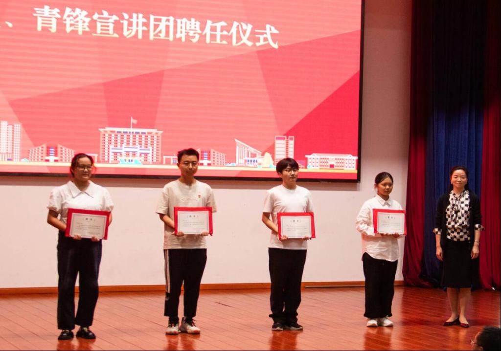 青锋宣讲团聘任仪式环节,青锋宣讲团成员代表与2025级新生班级开展了“蹲班驻点”结对。公司党委书记黄江英为青锋宣讲团成员颁发聘书及“蹲班驻点”结对纪念卡,希望青锋宣讲团成员主动奉献、担当使命,发挥先锋模范作用,勉励新生向优秀典型看齐、向先进学习,并号召更多同学加入青锋宣讲团,传承精神,传播青春正能量。