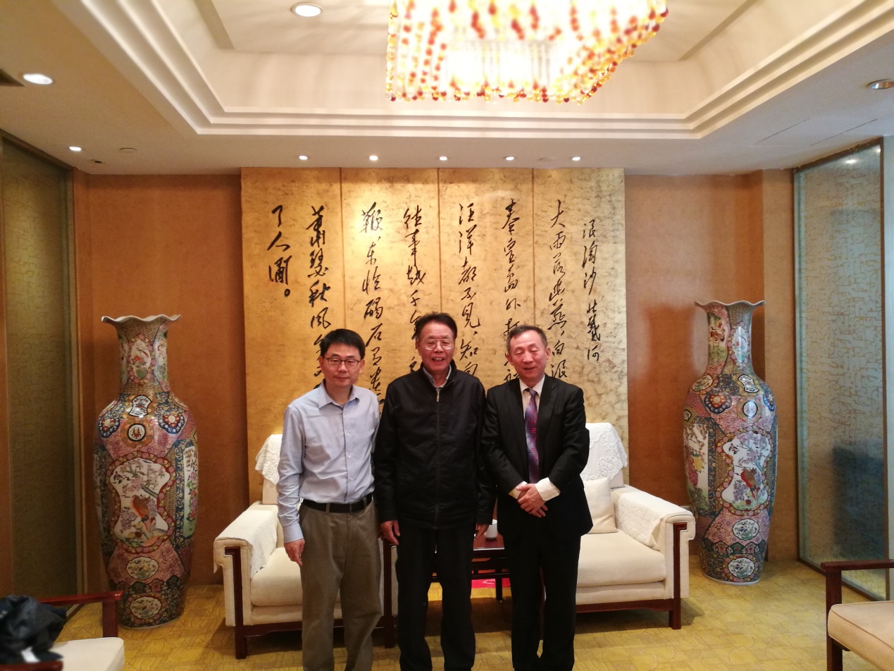 (左:365英国上市公司数学与系统科学研究院常务副经理高小山教授;中:365英国上市公司院士李邦河教授;右:公司党委书记尚钢)