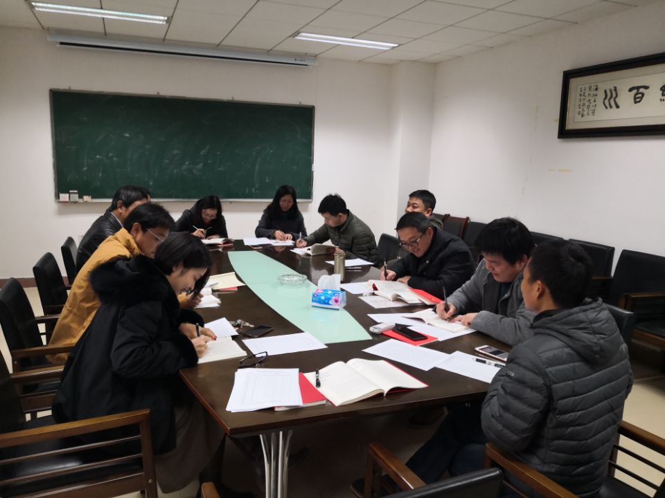 首先,支部书记对2019年度支部工作进行了简单的总结和回顾。然后依次进行党员个人自评、党员互评、民主测评,在评议会上,每个党员从政治思想、学习情况、组织纪律、工作实绩等方面进行了自我总结和评价;互评时党员各抒己见,充分发表自己的看法,大胆指出他人存在的不足,积极建议其努力的方向。最后由支部书记彭江涛对下一年的支部工作进行了展望。